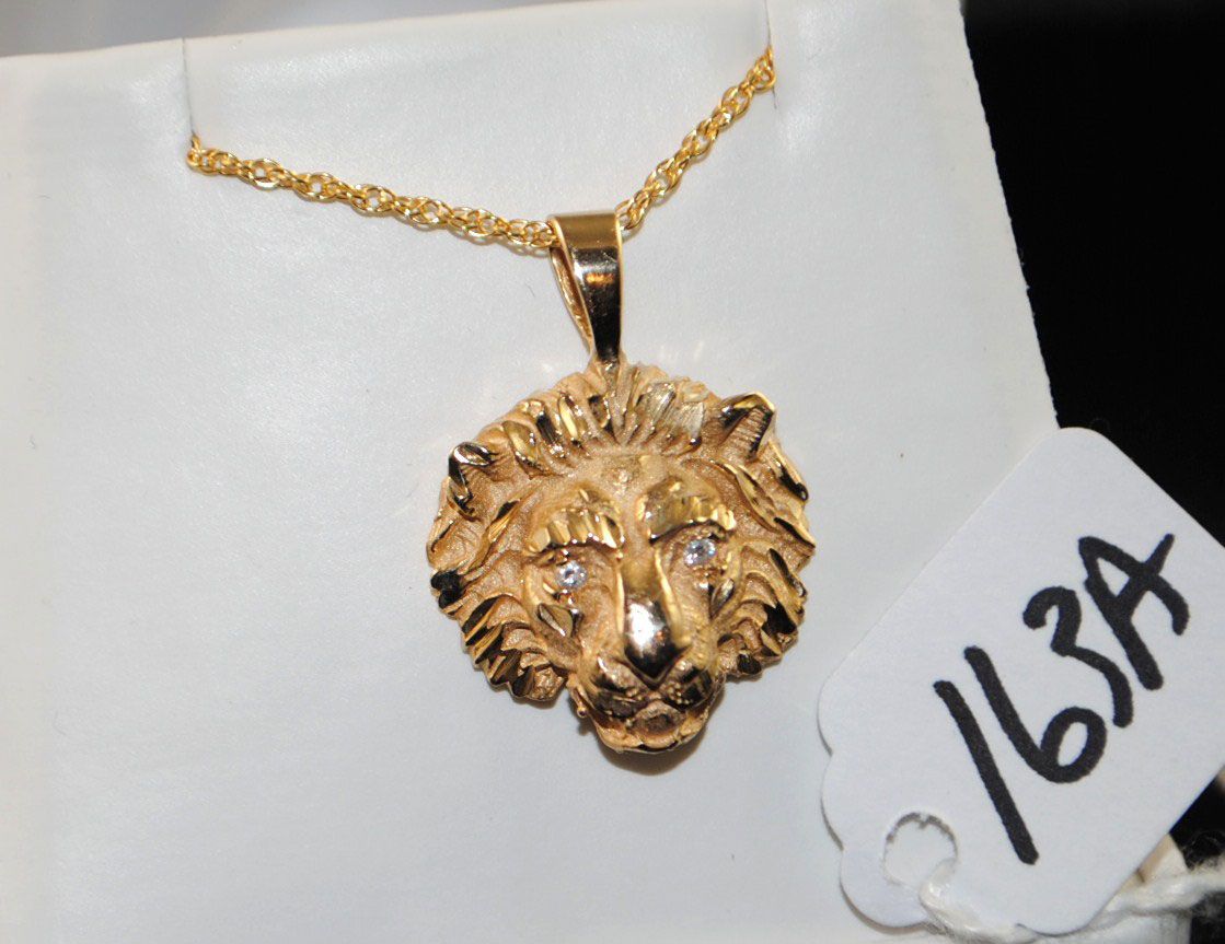 14K YELLOW GOLD LIONS HEAD PENDANT WITH DIAMOND EYES - WEIGHSN 6.2 GRAMS - APPRAISED RETAIL REPLACEMENT IS $1,650.00 - COMES WITH THE JEWELERS APPRAISAL CARD FOR INSURANCE
