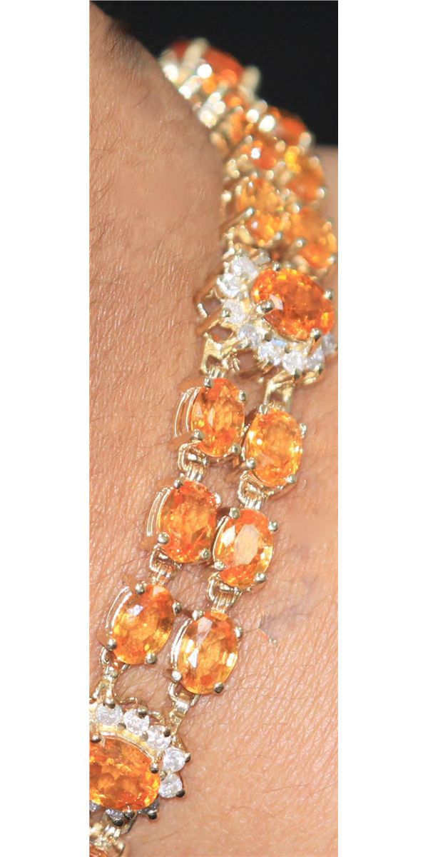 14K YELLOW GOLD MANDARINE GARNET AND DIAMOND BRACELET **|**|** 14K YELLOW GOLD MANDARINE GARNET AND DIAMOND BRACELET; MANDARINE GARNET WEIGHT 26.00 CTW; DIAMOND WEIGHT 1.65 CTW; GOLD WEIGHT AND DESCRIPTION 14K YELLOW/ 17.00 GRAMS ; MSRP: $0