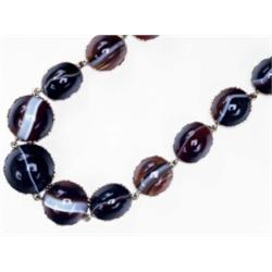 14K YELLOW GOLD NECKLACE, set with a graduated row of 27 banded agate cabochons, l. 17" - 43.2 cm.