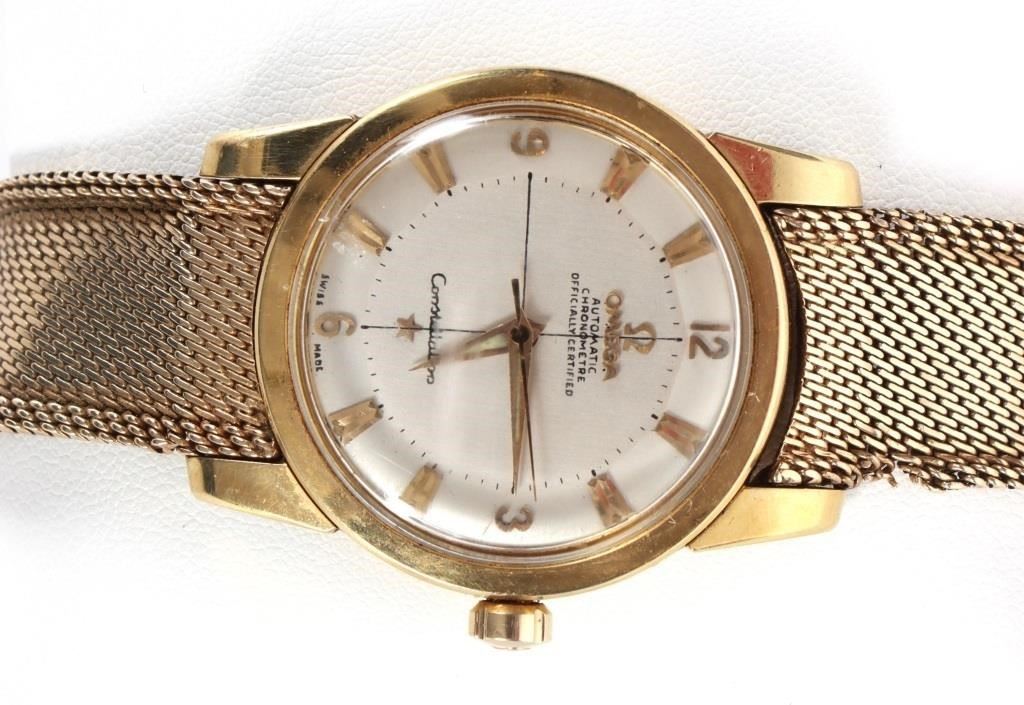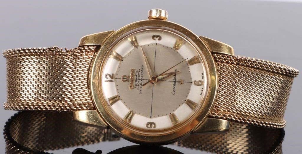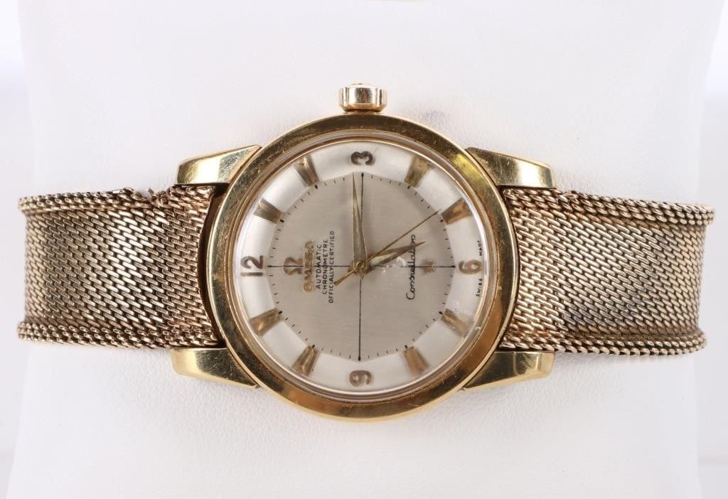 14K yellow gold Omega Constellation 1961 Automatic Chronometer waterproof 100 Club Life Member men's wristwatch.