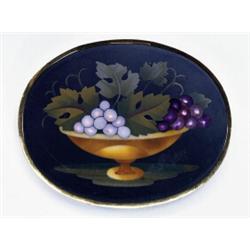 14K YELLOW GOLD OVAL BROOCH, set with a fine petra-dura panel depicting a fruit bowl still-life...