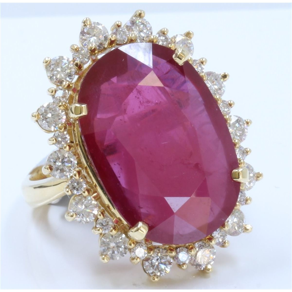 14K YELLOW GOLD RING:8.79g/Diamond:0.36ct/Diamond:1.58ct/Ruby:19.11ct
