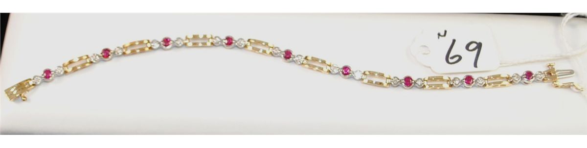14K YELLOW GOLD RUBY AND DIAMOND BRACELET WITH NINE NATURAL RUBY'S AND EIGHTEEN ROUND FULL CUT DIA