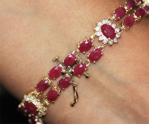 14K YELLOW GOLD RUBY AND DIAMOND BRACELET **|**|** 14K YELLOW GOLD RUBY AND DIAMOND BRACELET; RUBY WEIGHT 25.00 CTW; DIAMOND WEIGHT 1.66 CTW; GOLD WEIGHT AND DESCRIPTION 14K YELLOW/ 17.00 GRAMS ; MSRP: $0