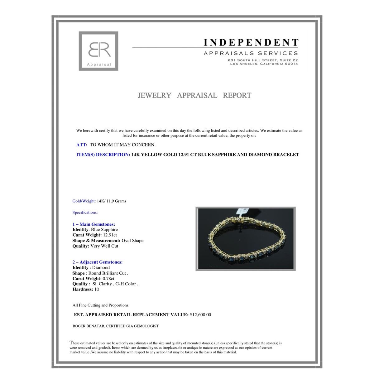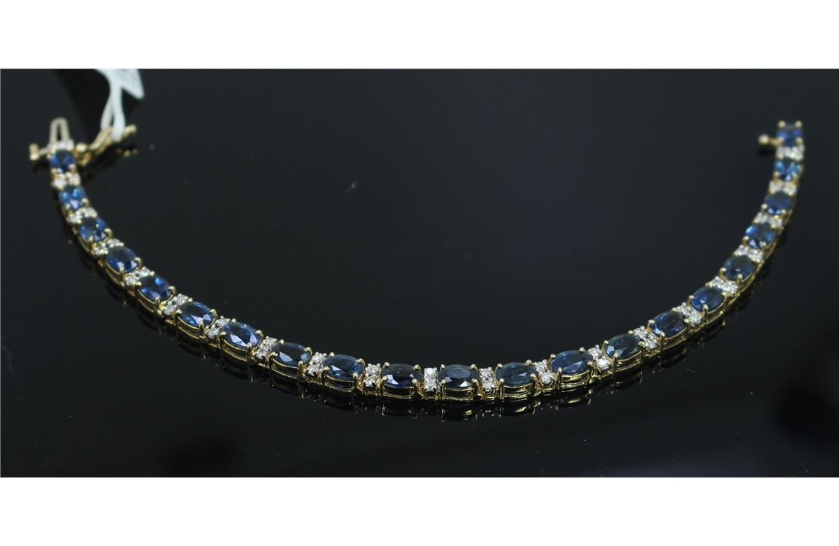 14K YELLOW GOLD SAPPHIRE AND DIAMOND BRACELET/11.9 GRAM /DIAMOND 0.78 CT/BLUE SAPPHIRE 12.91 CT