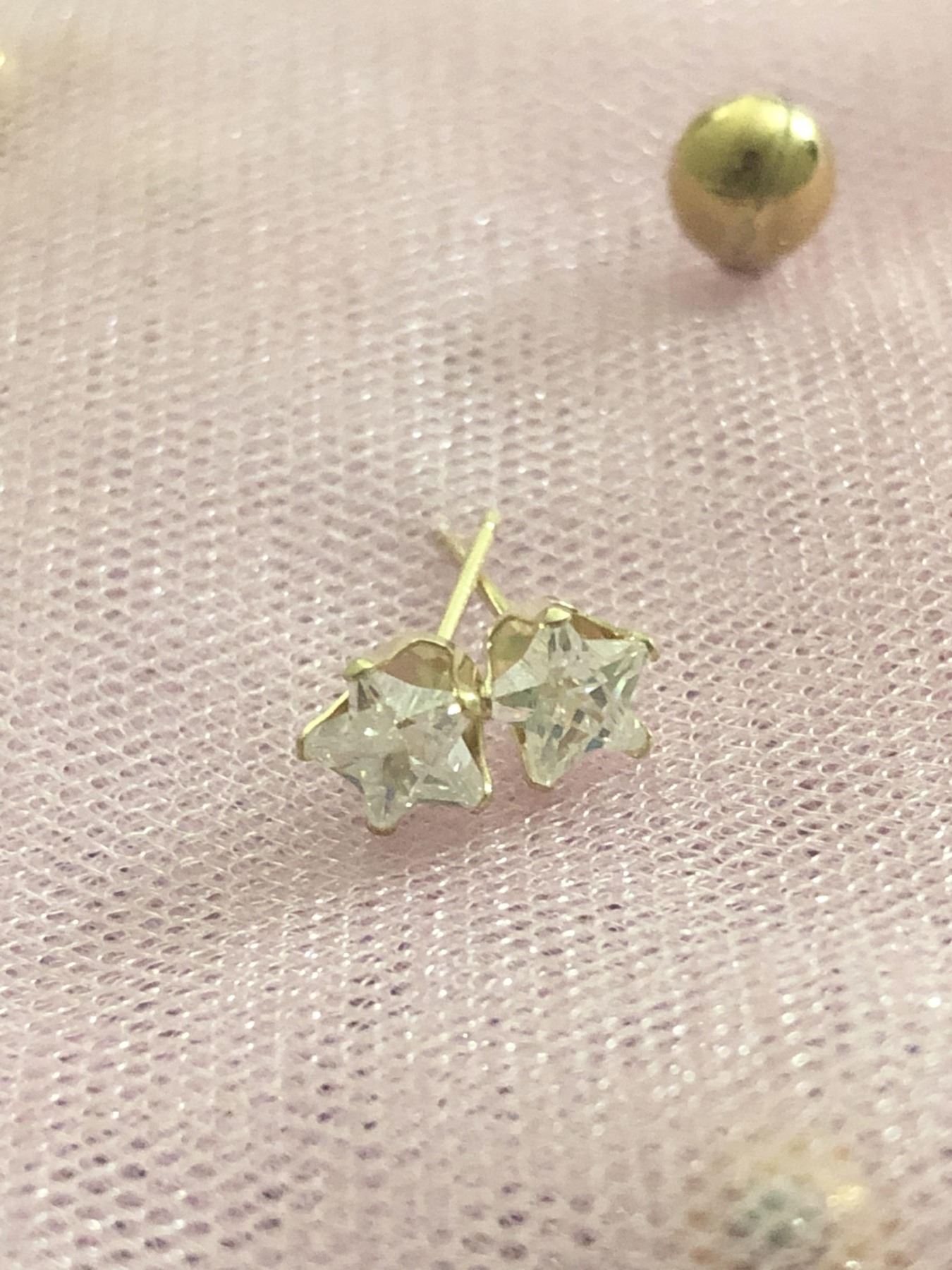 14K YELLOW GOLD STAR CZ EARRINGS, MADE IN CANADA