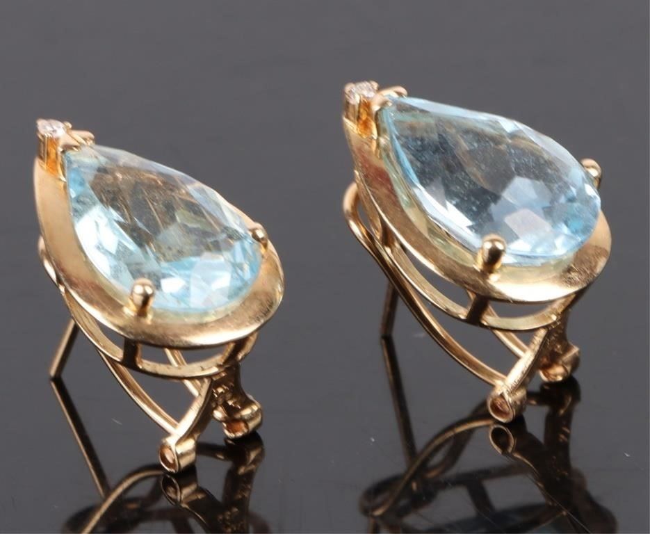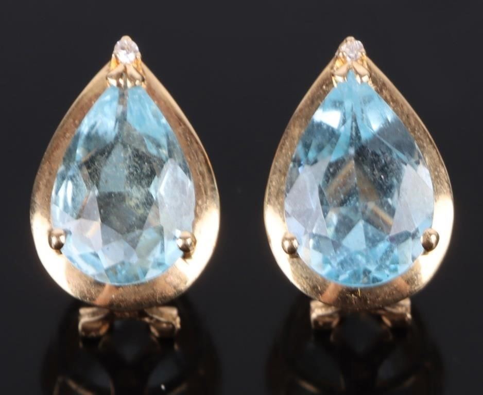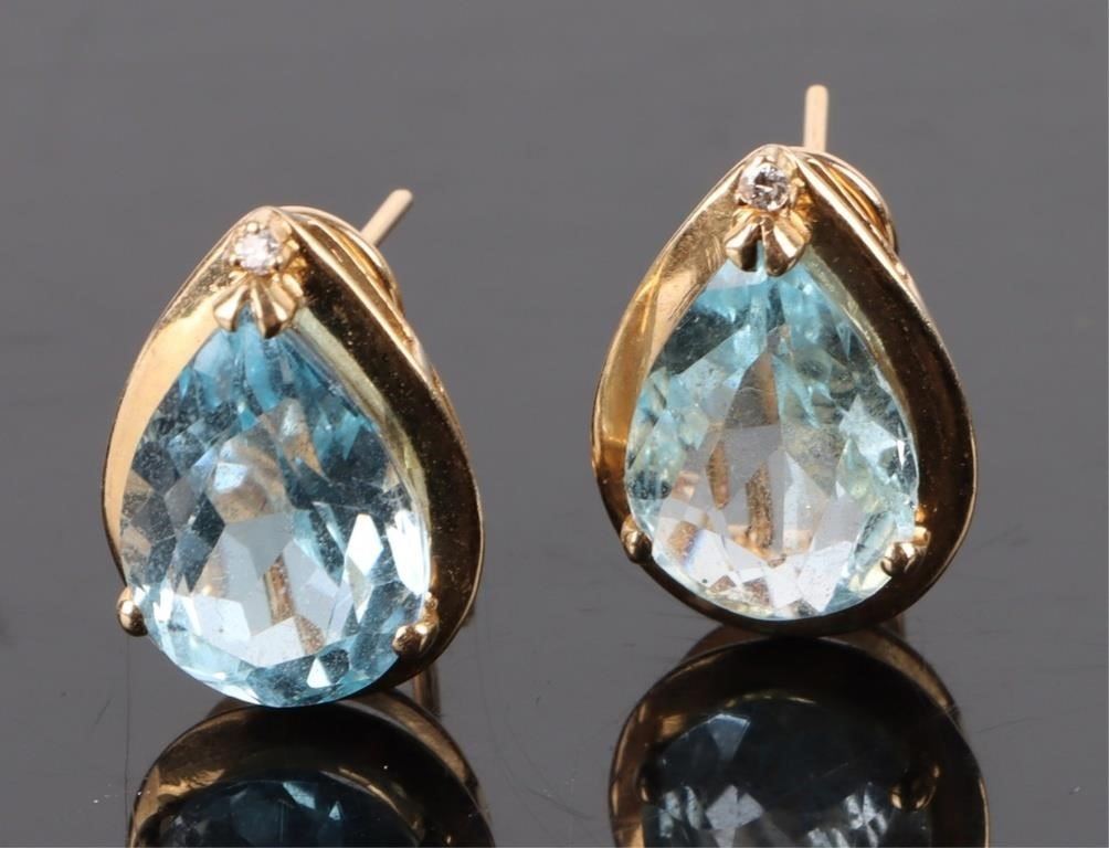 14K yellow gold topaz diamond teardrop ladies earrings.