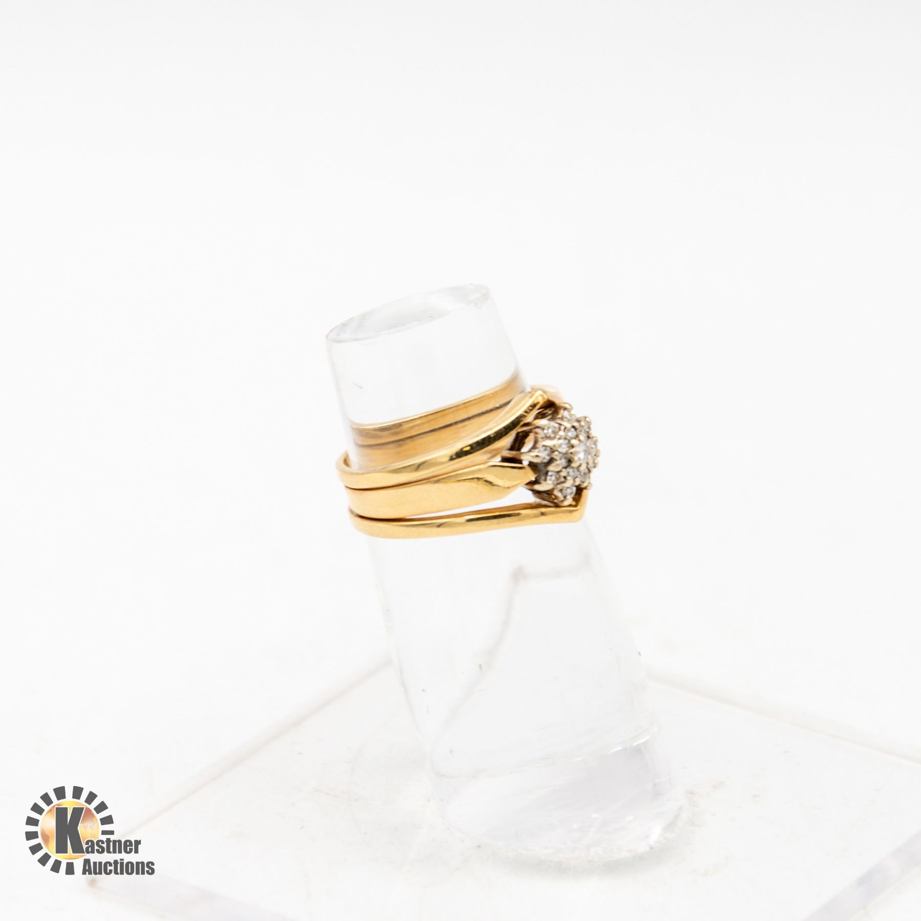 ACCOMPANIED BY 2 PLAIN YELLOW GOLD BANDS SOLDERED TOGETHER SIZE 6.5. APPRAISED AT $2100.00