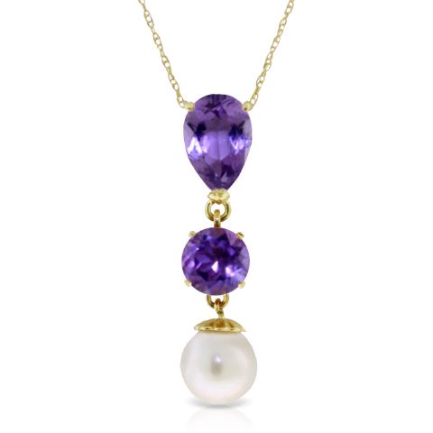 14K. SOLID GOLD NECKLACE WITH AMETHYST & PEARL