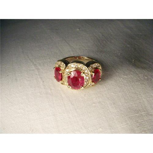 <tr><td>Title:14K YG 4.5 CT Huge Ruby Diamond Tri-Stone Ring</td></tr>
