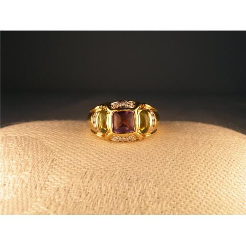 <tr><td>Title:14K YG Amethyst Peridot Diamond Designer Band</td></tr>