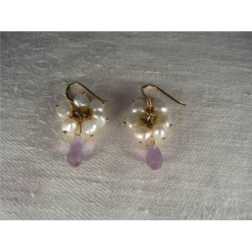 <tr><td>Title:14K YG Amethyst Seed Pearl Dangle Earrings</td></tr>