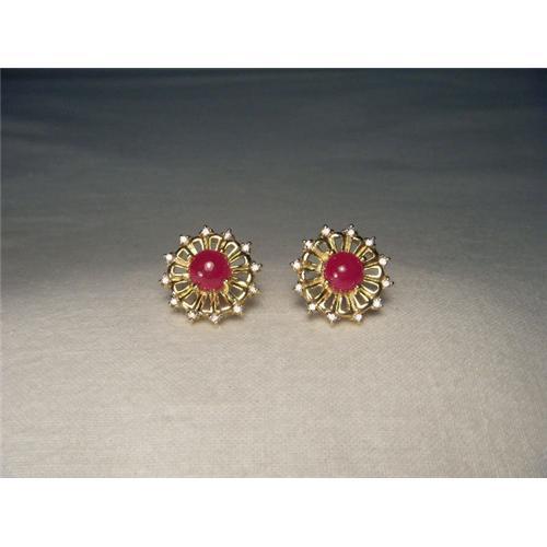 <tr><td>Title:14K YG Cabochon Ruby Diamond Snowflake Earrings</td></tr>