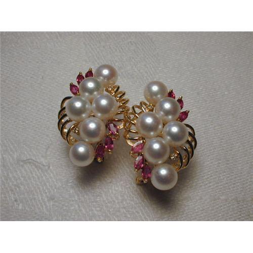 <tr><td>Title:14K YG Cultured Pearl Ruby Diamond Earrings</td></tr>