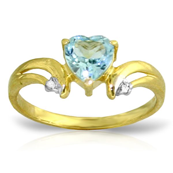 A heart shaped Blue Topaz accented with Genuine Diamonds portrays a love story on this 14 karat Gold Ring