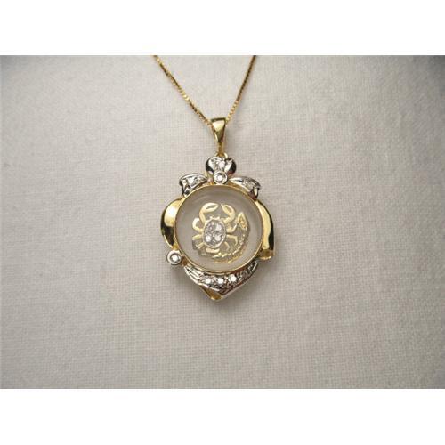 <tr><td>Title:14K YG Diamond Motion Zodiac Cancer Pendant</td></tr>