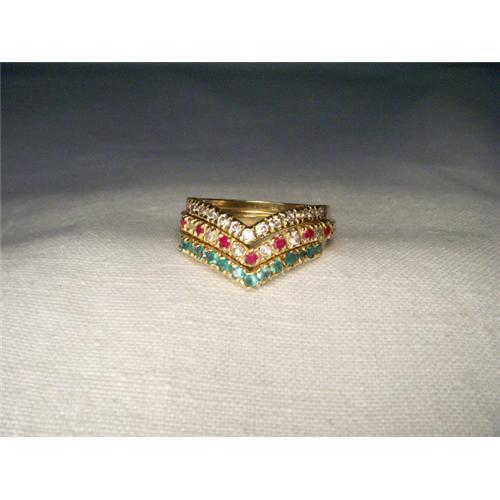 <tr><td>Title:14K YG Diamond Ruby Emerald Stacking Band Rings</td></tr>