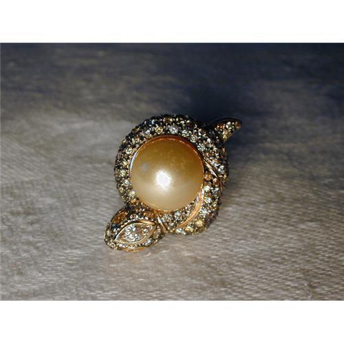 <tr><td>Title:14K YG Diamond Yellow Cultured Pearl Snake Ring</td></tr>