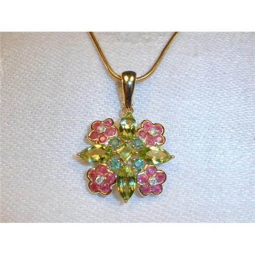 <tr><td>Title:14K YG Emerald Ruby Peridot Diamond Pendant</td></tr>