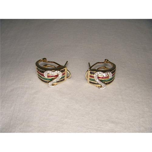<tr><td>Title:14K YG Emerald Sapphire Ruby Diamond Earrings</td></tr>