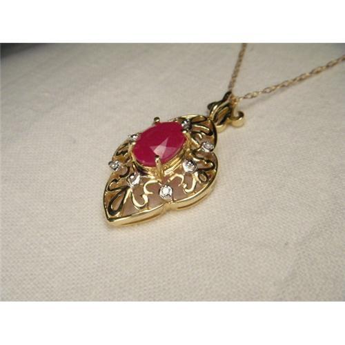 <tr><td>Title:14K YG Filigree Ruby Diamond Necklace Pendant</td></tr>