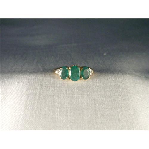 <tr><td><font size="2" face="Arial, Helvetica, sans-serif"><strong><font color="#000033">Title:</font></strong>14K YG Filigree Tri-Stone Emerald Diamond Ring</font></td></tr>