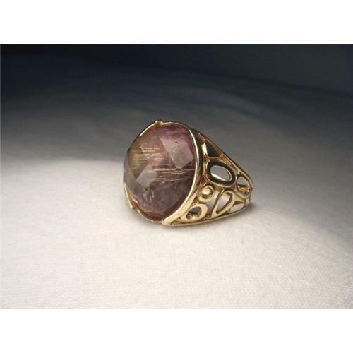<tr><td>Title:14K YG Gold Designer Handmade Amethyst Ring</td></tr>