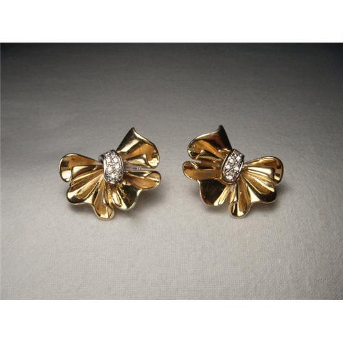 <tr><td>Title:14K YG Gold Diamond Bow Clip-on Clipon Earrings</td></tr>