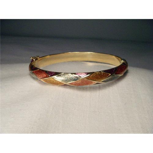 <tr><td>Title:14K YG Multi-Color Enamel Bangle Bracelet</td></tr>