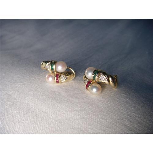 <tr><td>Title:14K YG Ruby Emerald Diamond Pearl Earrings</td></tr>