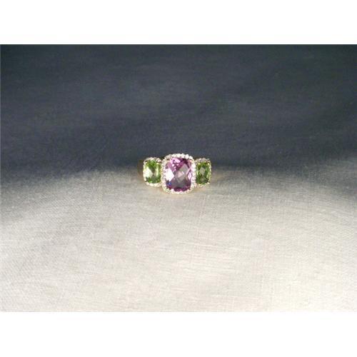 <tr><td>Title:14K YG Tri-Stone Amethyst Peridot Diamond Ring</td></tr>