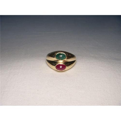 <tr><td>Title:14K YG Yellow Gold Cabochon Emerald Ruby Ring</td></tr>