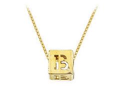 14K Yellow Alphabet "B" Semi-Polished Block Initial Chain Slide Pendant with Outside Diameter: 6.5 MM. It comes with standard 16" gold chain.