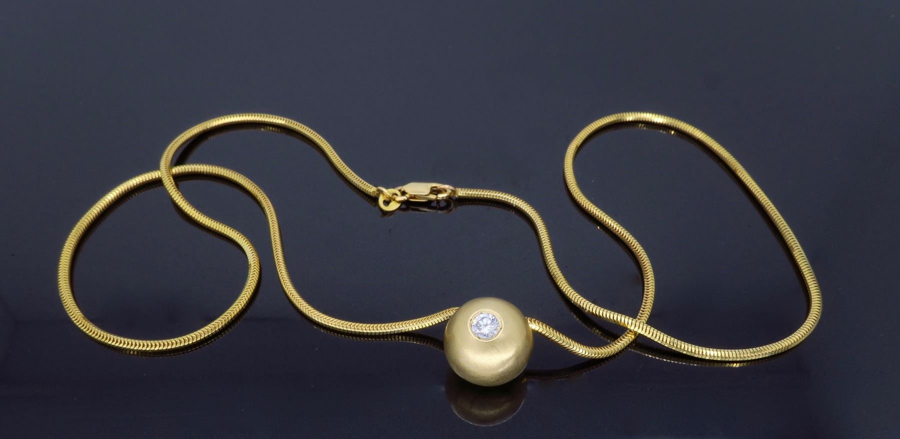 One 14K Yellow Gold 0.25ct Diamond Pendant with Chain. (1) Round Diamond with a total weight of 0.25cts with a color of G-H and clarity of VS-2. Total weight of this pendant with chain is 12.1 grams. Total length of this chain is 18 inches.