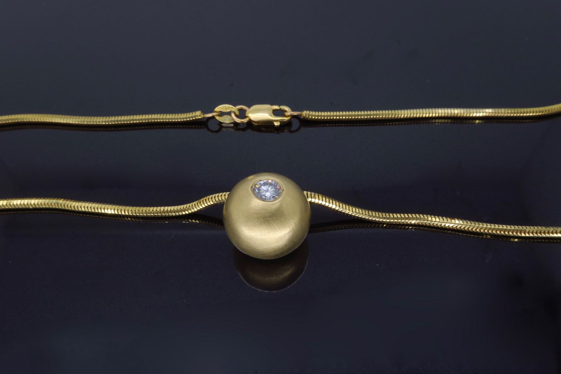 One 14K Yellow Gold 0.25ct Diamond Pendant with Chain. (1) Round Diamond with a total weight of 0.25cts with a color of G-H and clarity of VS-2. Total weight of this pendant with chain is 12.1 grams. Total length of this chain is 18 inches.