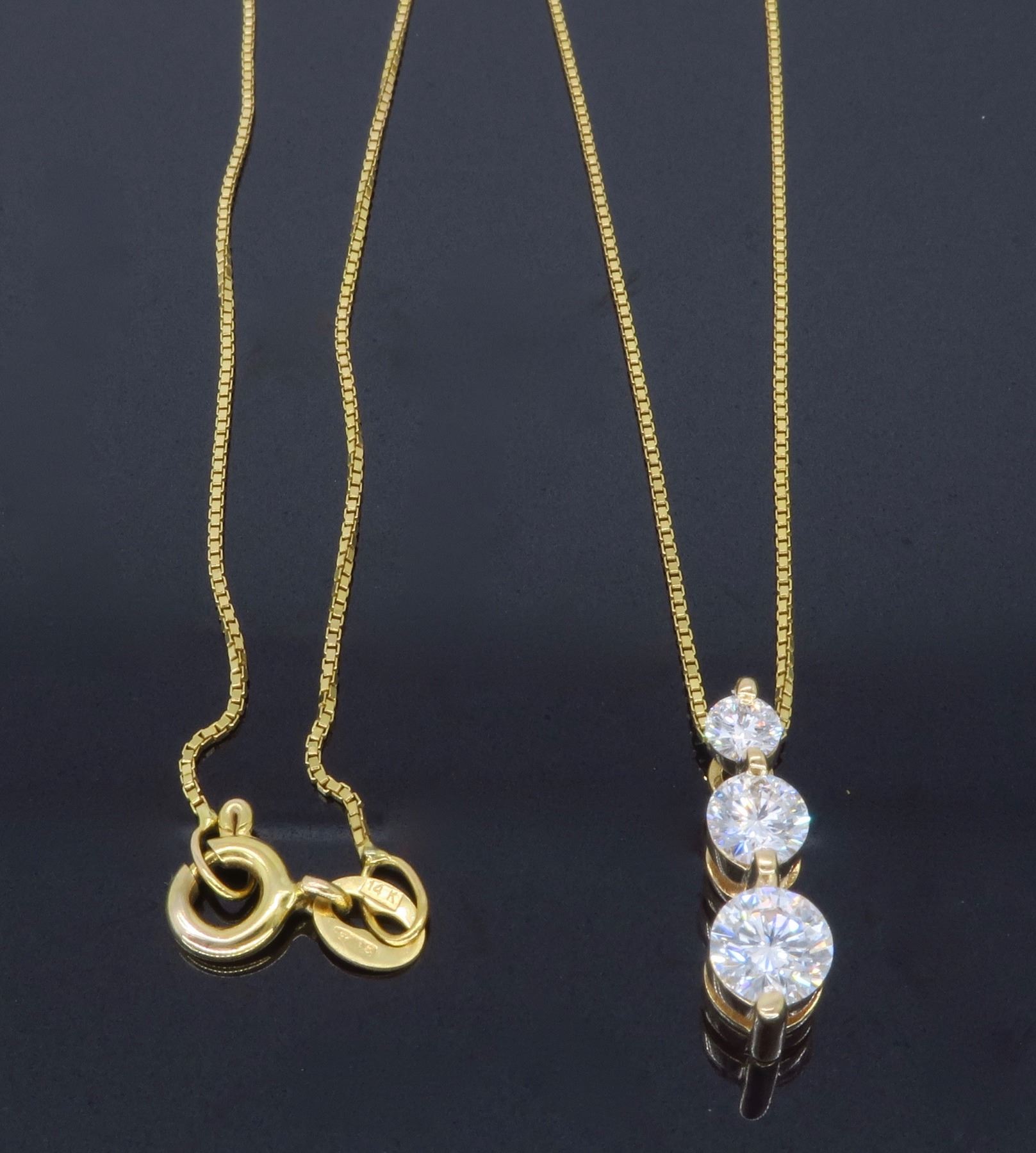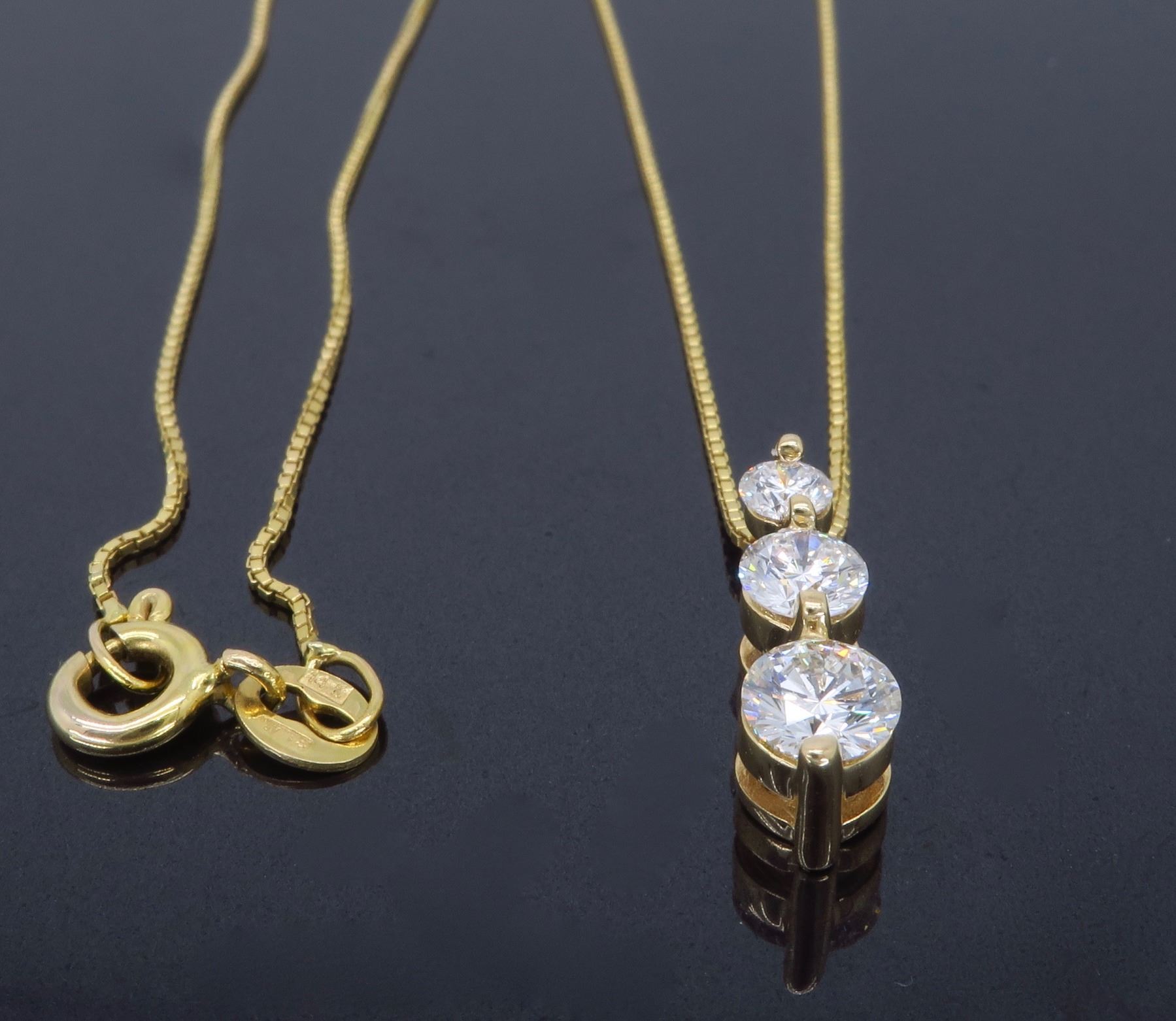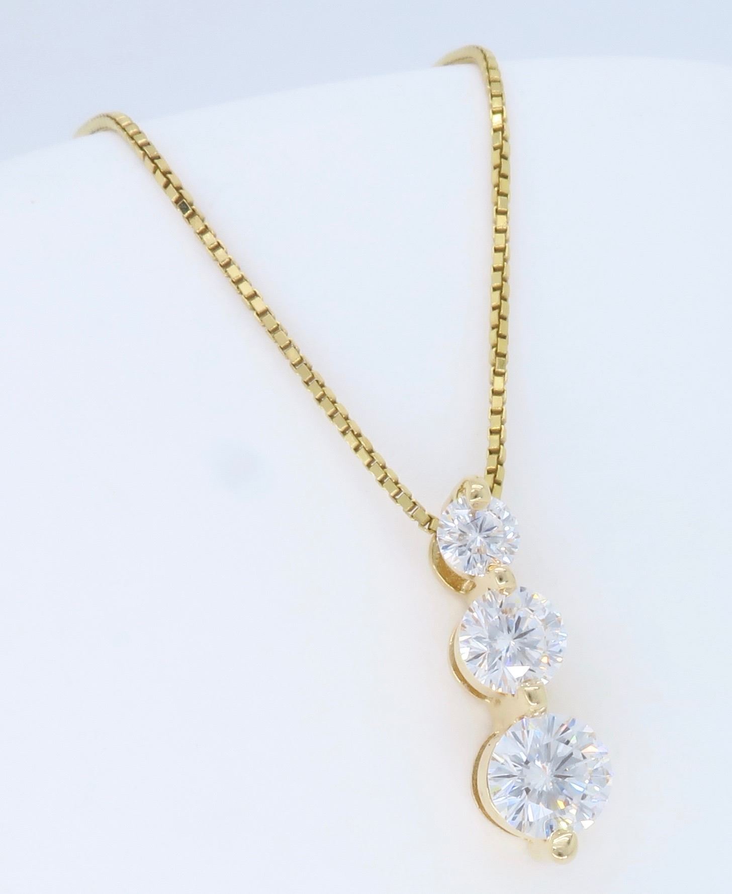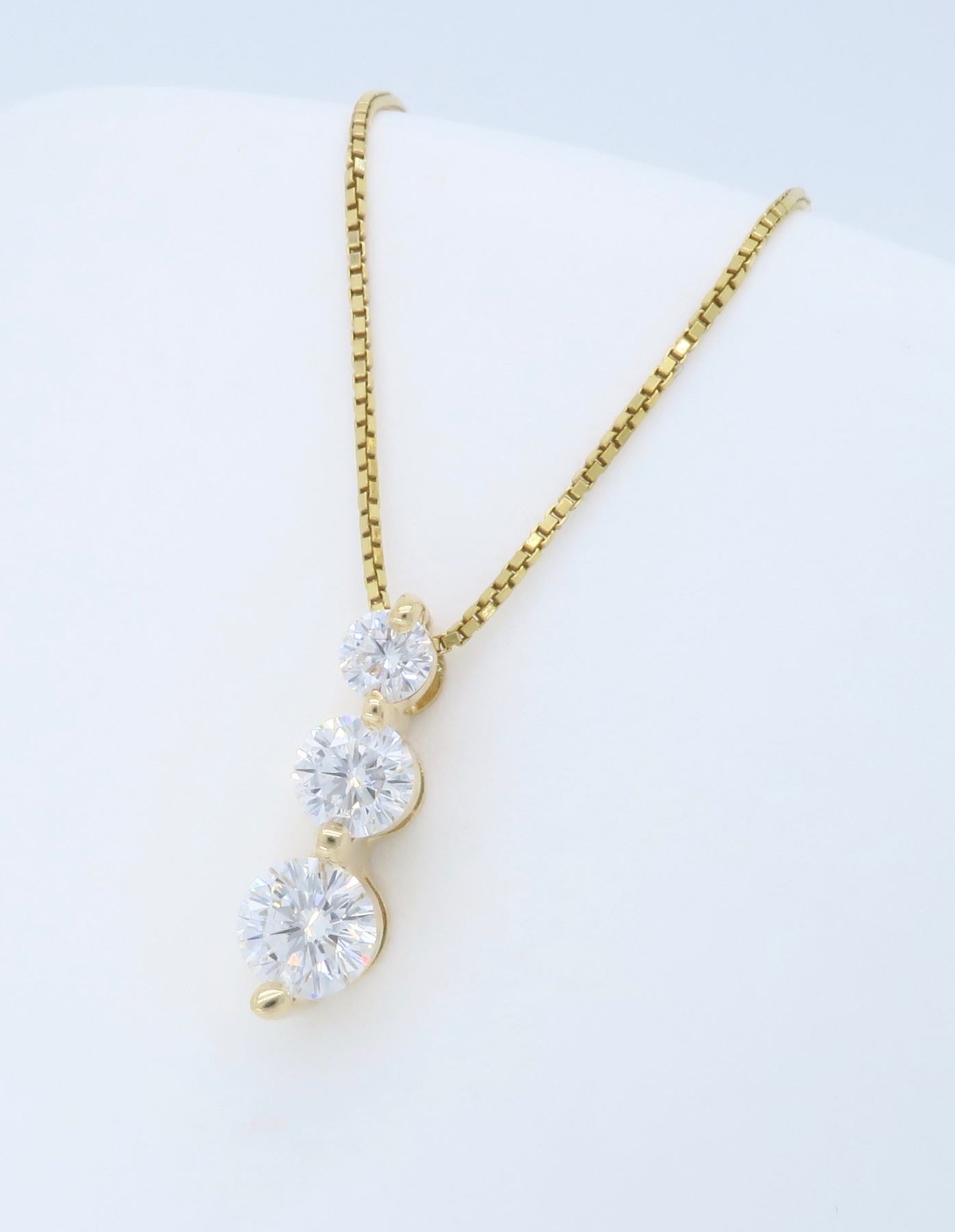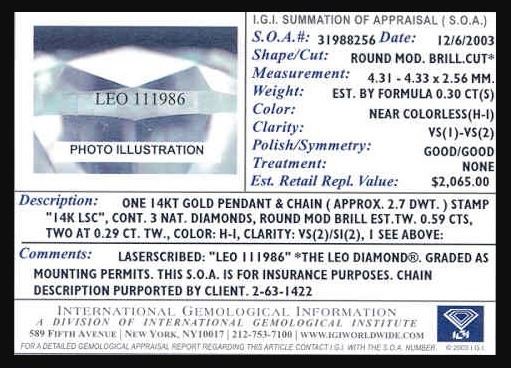 One 14K Yellow Gold 0.59ctw Leo Diamond Pendant with Chain. (3) Leo Diamonds with a total weight of 0.59cts with a color of H-I and clarity of VS-1 to VS-2. Total weight of this pendant is 2.3 grams. Total weight of this chain is 16 inches.