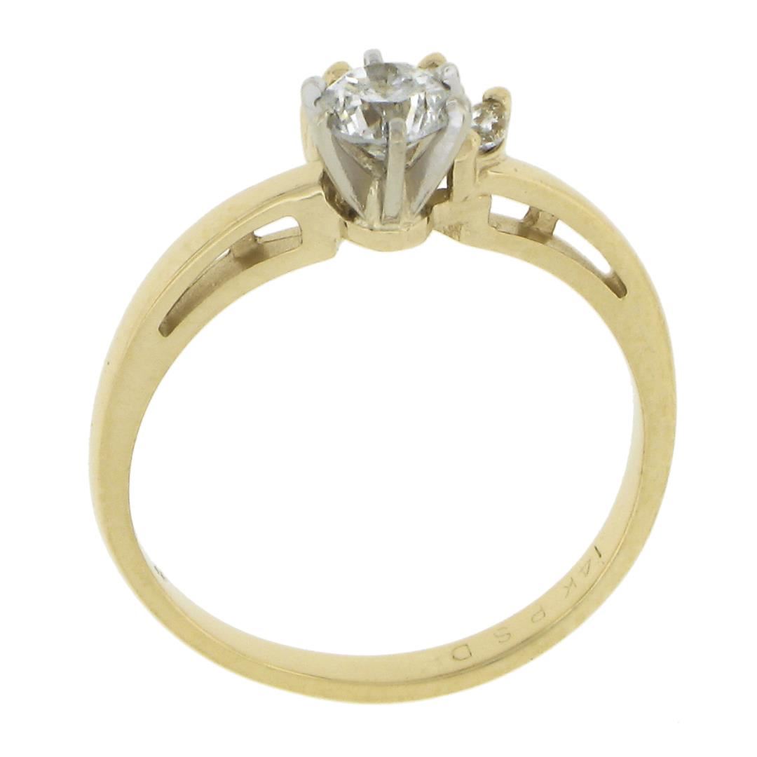 14K Yellow Gold 0.67ctw Prong Round Solitaire w/ Marquise Diamond Spray Ring