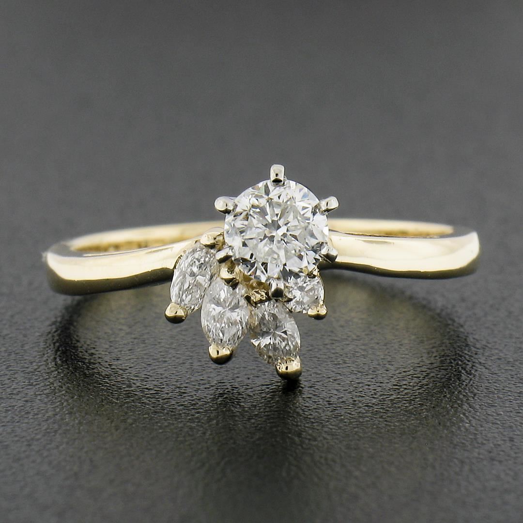 14K Yellow Gold 0.67ctw Prong Round Solitaire w/ Marquise Diamond Spray Ring