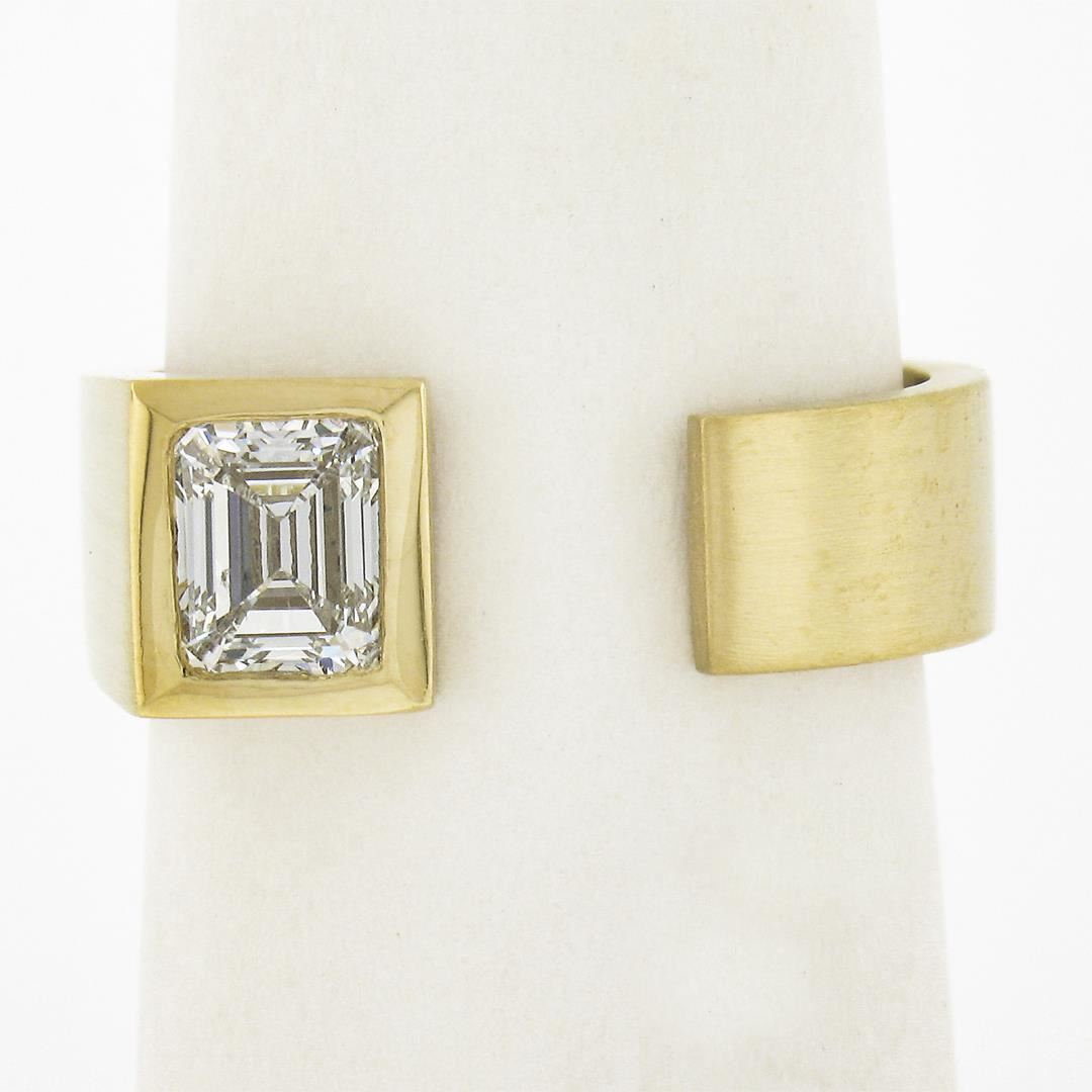 a solid 14k yellow gold open wrap ring, with GIA graded emerald cut natural diamond ( K - SI2 ; 0.91ct). The ring is size 7.0, weighs a total of 7.78 grams, and measures 7.6mm wide. Comes with all original relevant certifications.