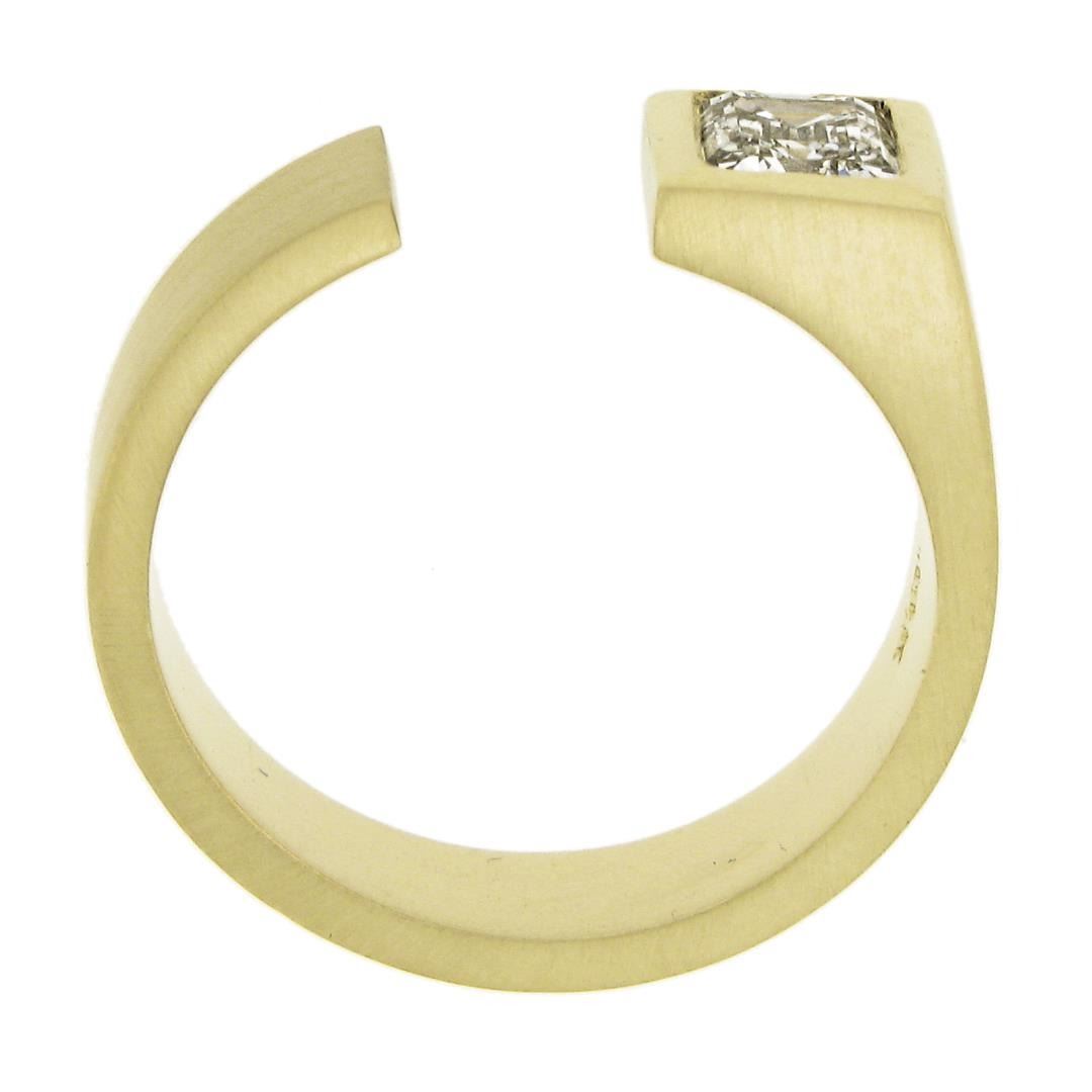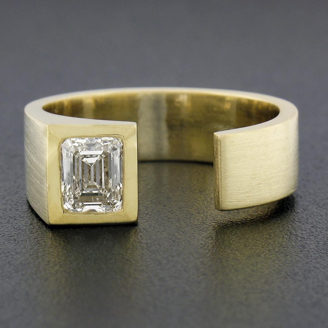 14K Yellow Gold 0.91 ctw GIA Emerald Cut Diamond Brushed Wide Open Wrap Band Rin