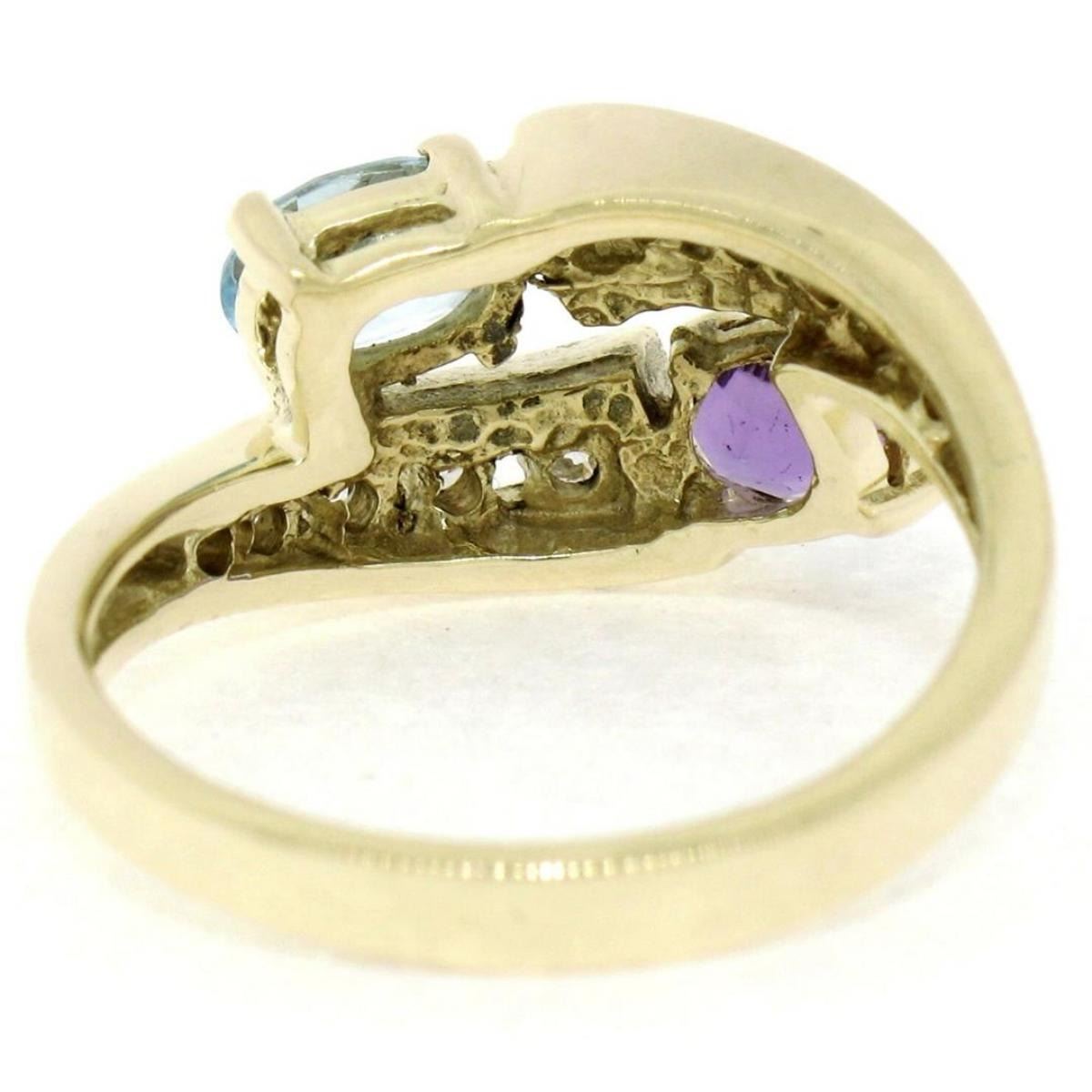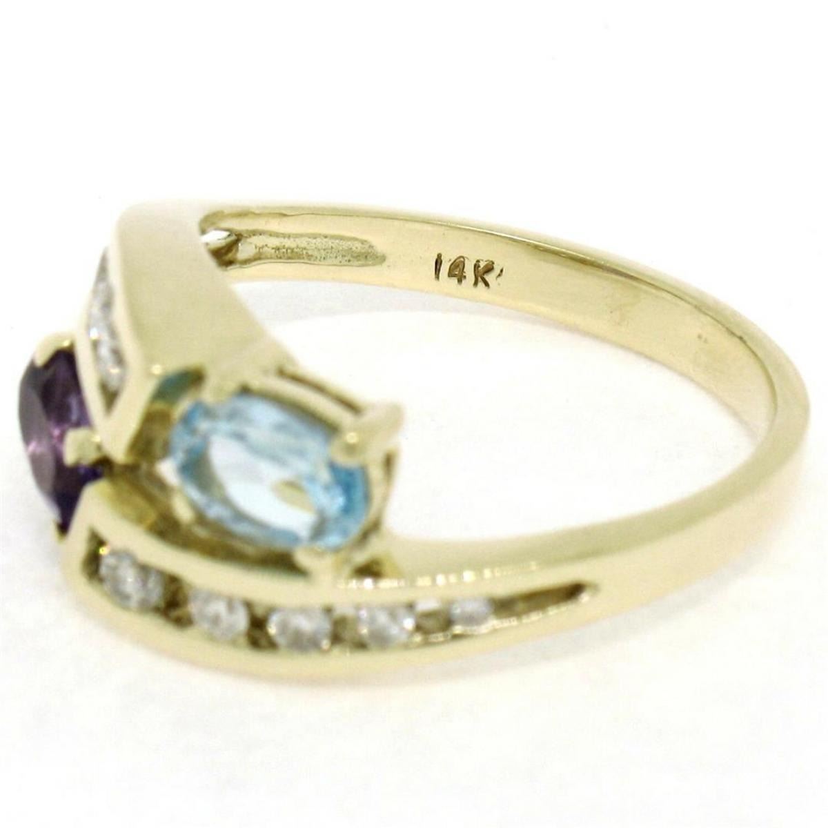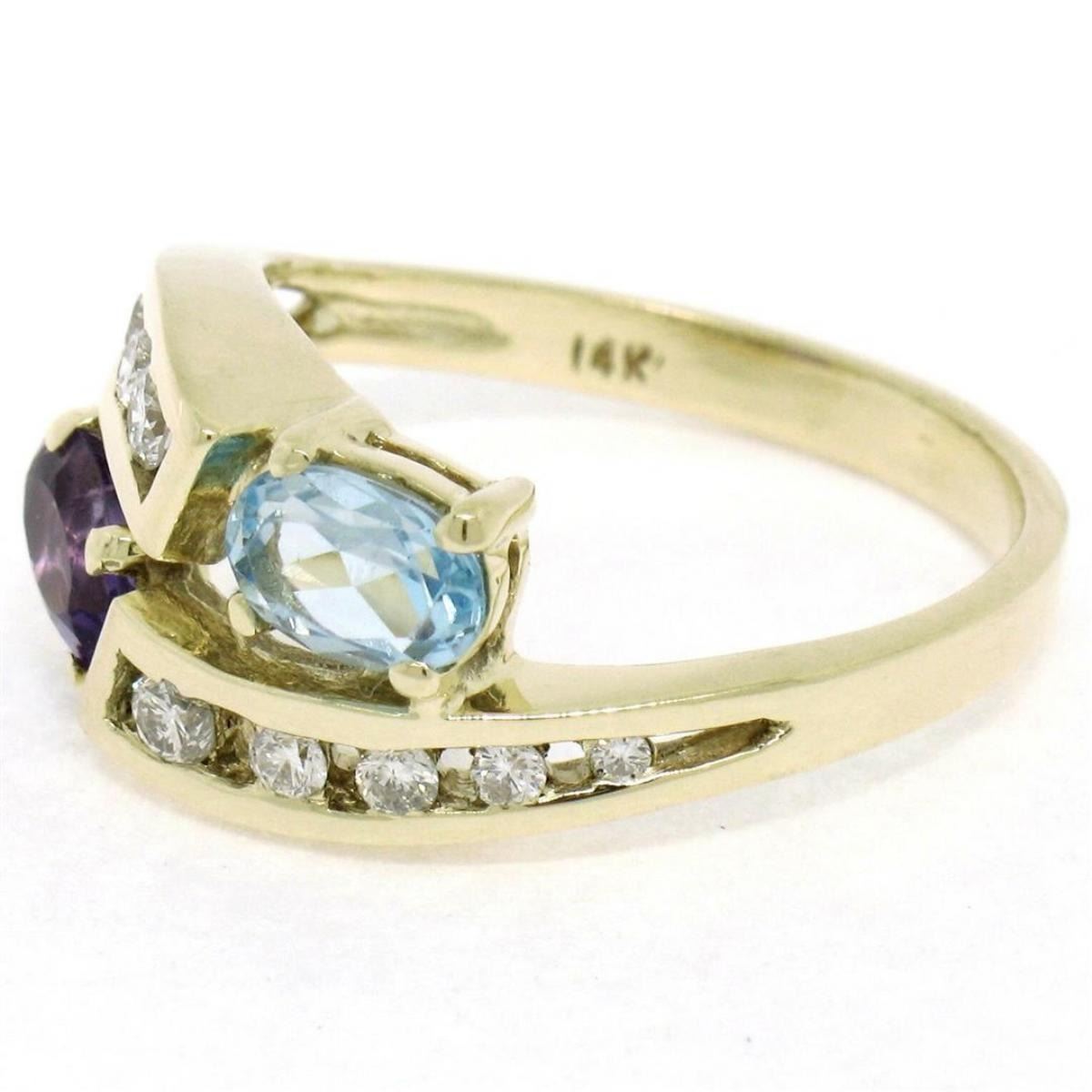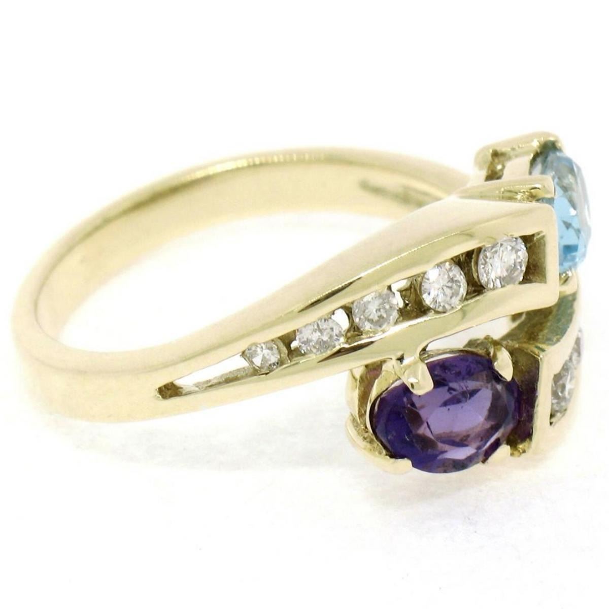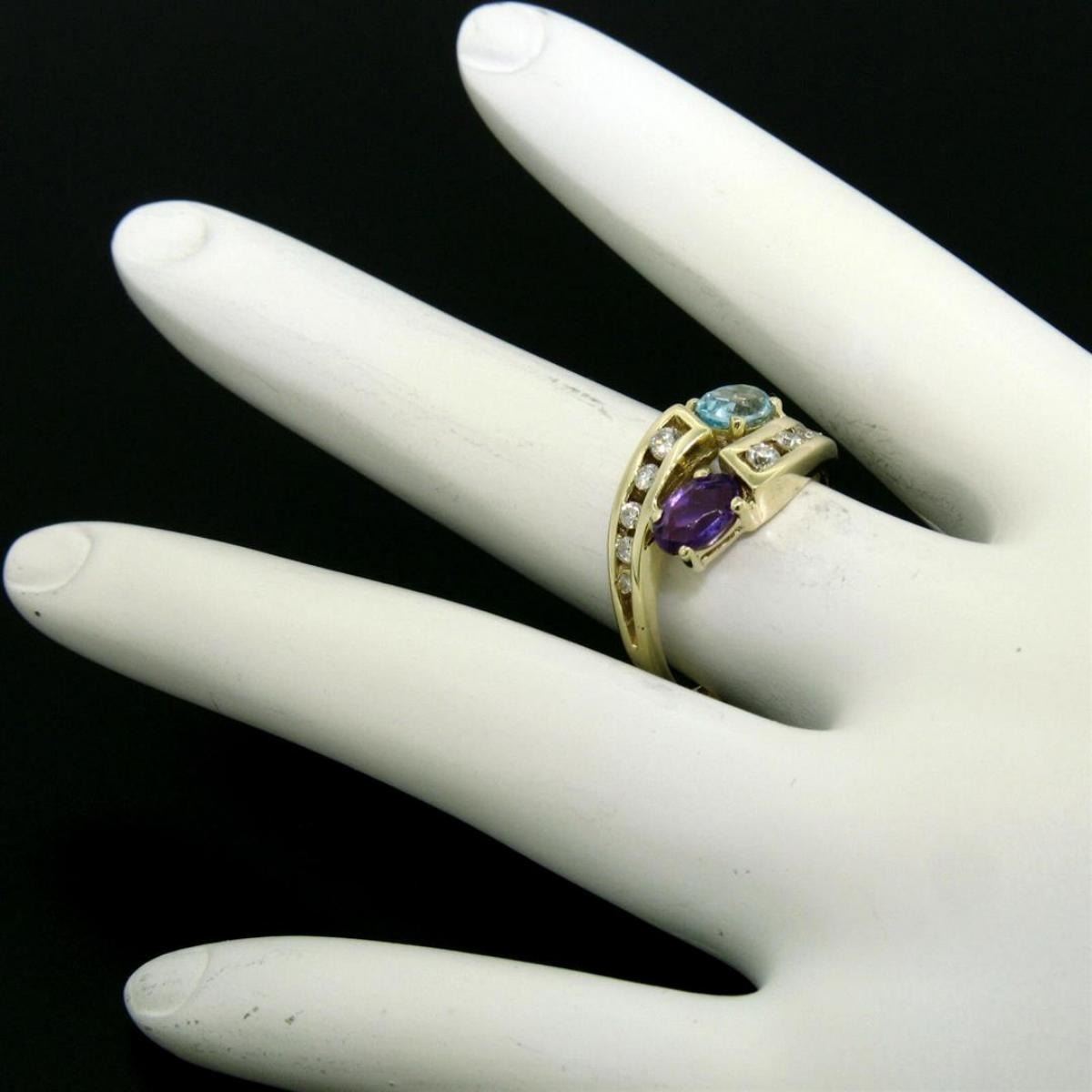 14K Yellow Gold 1.21 ctw Oval Amethyst & Blue Topaz Bypass Ring w/ Round Diamond