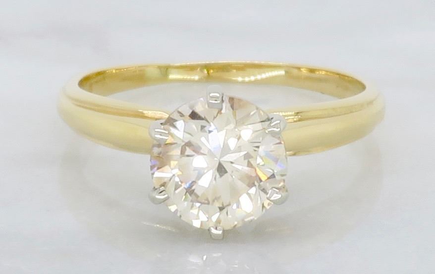 One 14K Yellow Gold 1.28ct Light Chocolate Diamond Ring. (1) Round Diamond with a total weight of 1.28cts with a color of light chocolate and clarity of SI-2. Total weight of this ring is 2.4 grams.