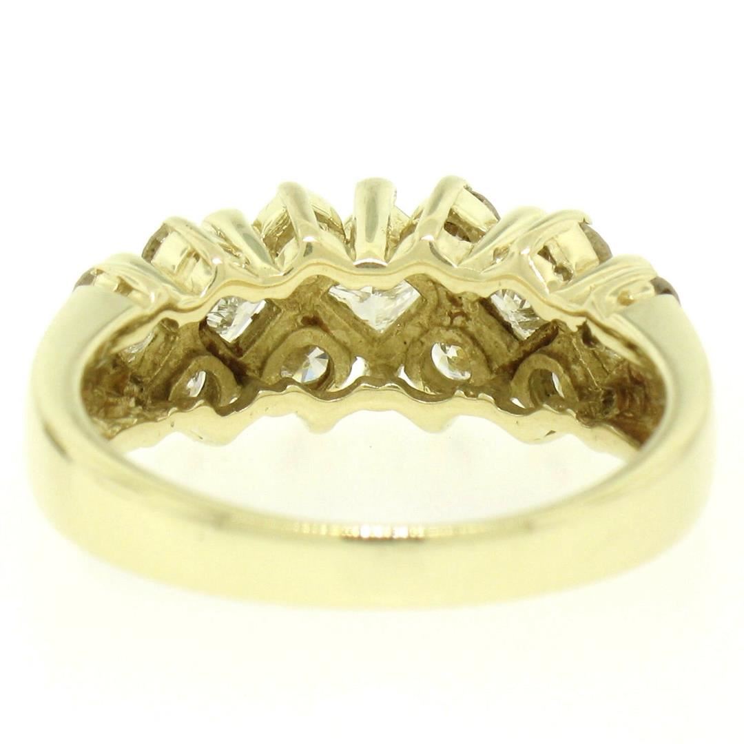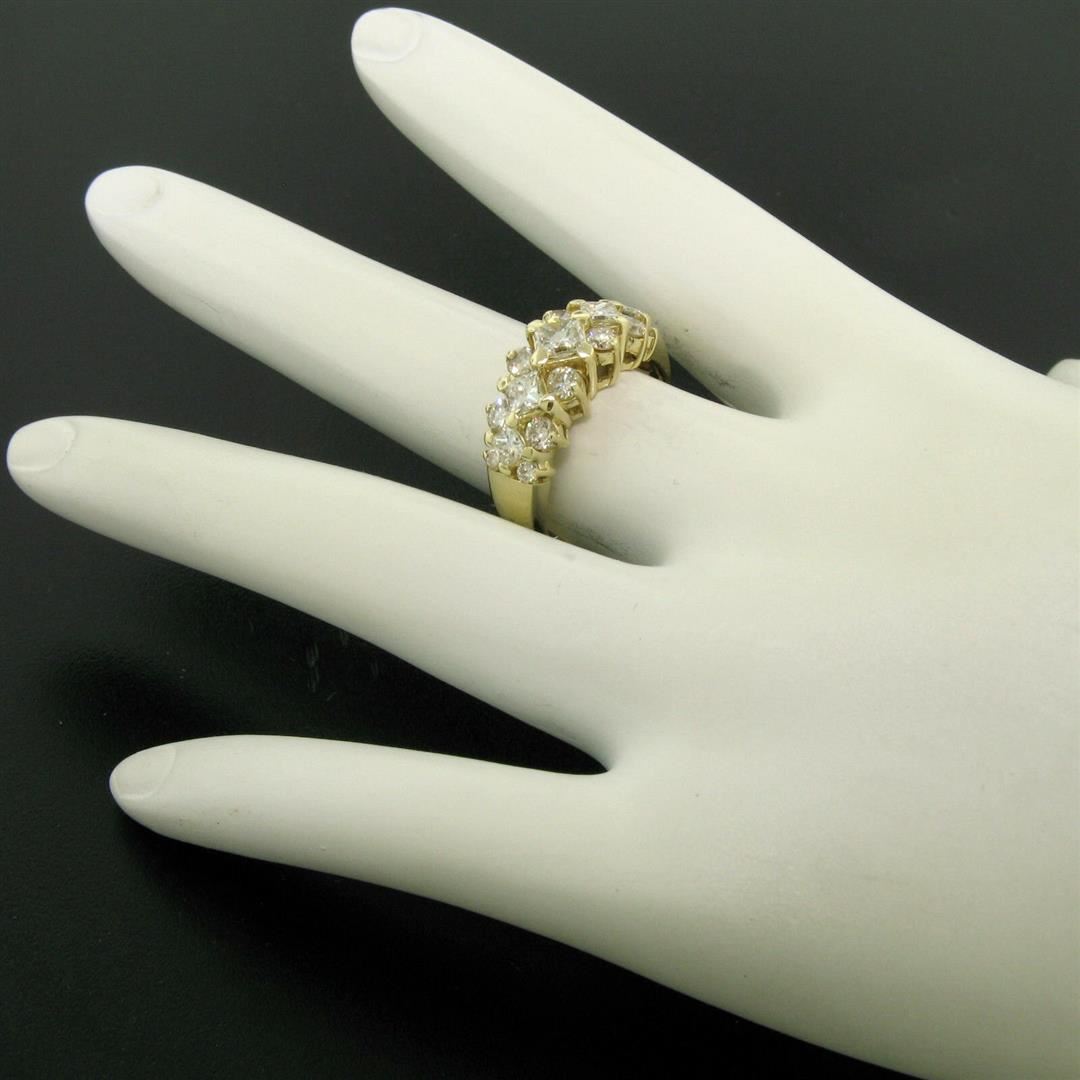 One 14K Yellow Gold 1.80ctw H VS Princess & Round Cut Diamond Cluster Wide Band Ring. Item Details: Material: 14K Solid Yellow Gold, Weight: 5.2 Grams, Stone(s): (5) Natural Genuine Diamonds - Princess Cut - Prong Set - H/I Color - VS1-2 Clarity - 0.95ctw (approx.), (12) Natural Genuine Diamonds - Round Cut - Prong Set - H/I Color - VS1-2 Clarity - 0.85ctw (approx.), Total Carat Weight: 1.80 (approx.), Ring Size: 6.5 (We can custom size this ring.), Ring Width: 7.7mm, Ring Height: 6.2mm rise off the finger Condition: Like New! Signature: MARS 14K