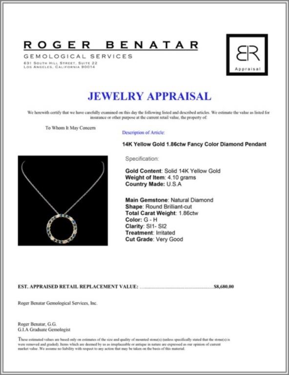 Regarding Appraised Jewelry and Loose Stones - Auctionfarm sends them out to a third party for Retail Replacement Value Appraisals, which are the most common. These types of evaluations are written for insurance needs. This would be the cost to replace the jewelry with an item of equal quality and kind, considered to be the current market price or the replacement value. This type of appraisal is done to protect you in the event of damage or loss of a valuable item. Our appraisals are conducted by independent 3rd Party appraisal firms that utilizes Certified GIA Gemologist. Appraisals should be used for verification of gemstone and/or metal weight, size, and grade only, not actual value. Appraisal value should be considered for insurance purposes only, not actual value, as price varies greatly from retail locations thru out the world. Items should not be purchased with the expectation to resell for appraisal price, or for profit.