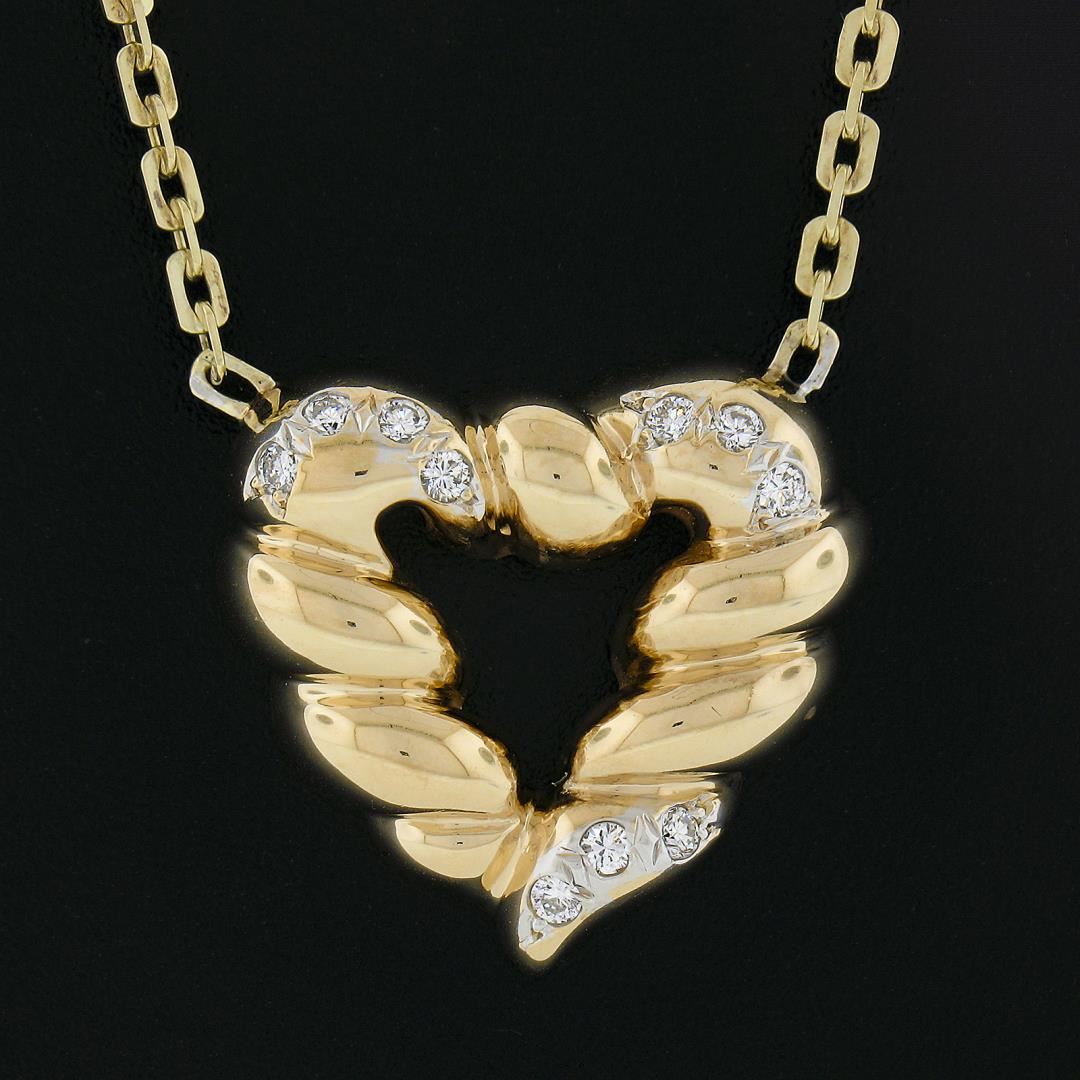 A solid 14k yellow gold pendant necklace, with 10 round brilliant cut natural diamonds (G/H - VS1/VS2 ; 0.30ctw). 15 inch cable link chain, 11.71 grams total weight, pendant measures 21.9x23.4mm.