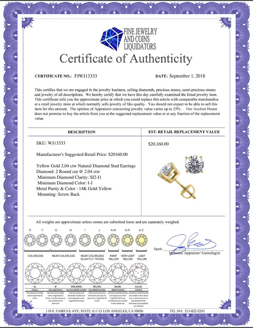 14K Yellow Gold Jewelry 2.04 ctw Natural Diamond Stud Earrings