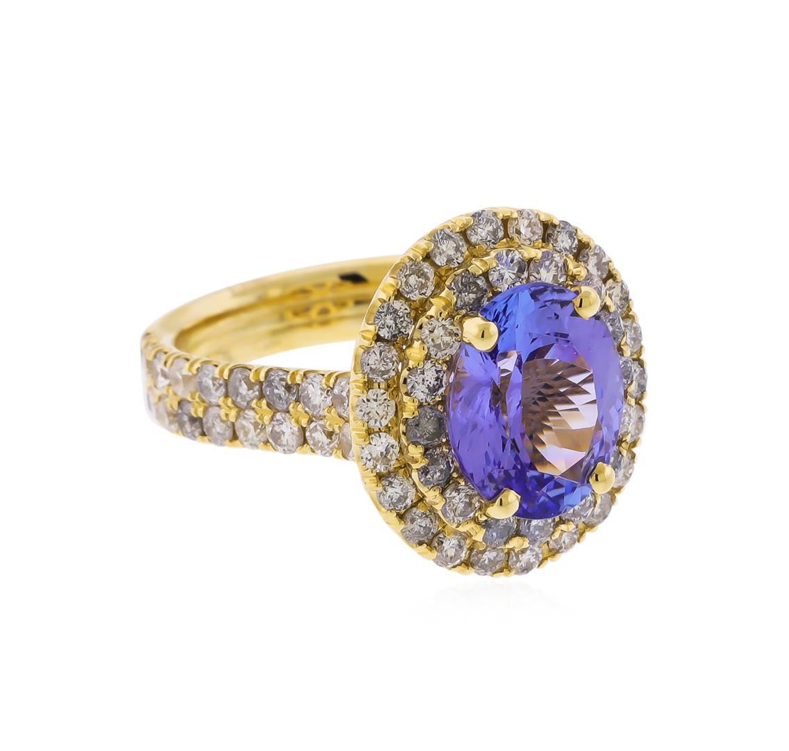 14K Yellow Gold 3.59ct Tanzanite and Diamond Ring. This ring contains (1) 3.59ct Tanzanite and approximately 2.29ctws of Round Brilliant Cut Diamonds. The total weight of the ring is 7.7 grams.