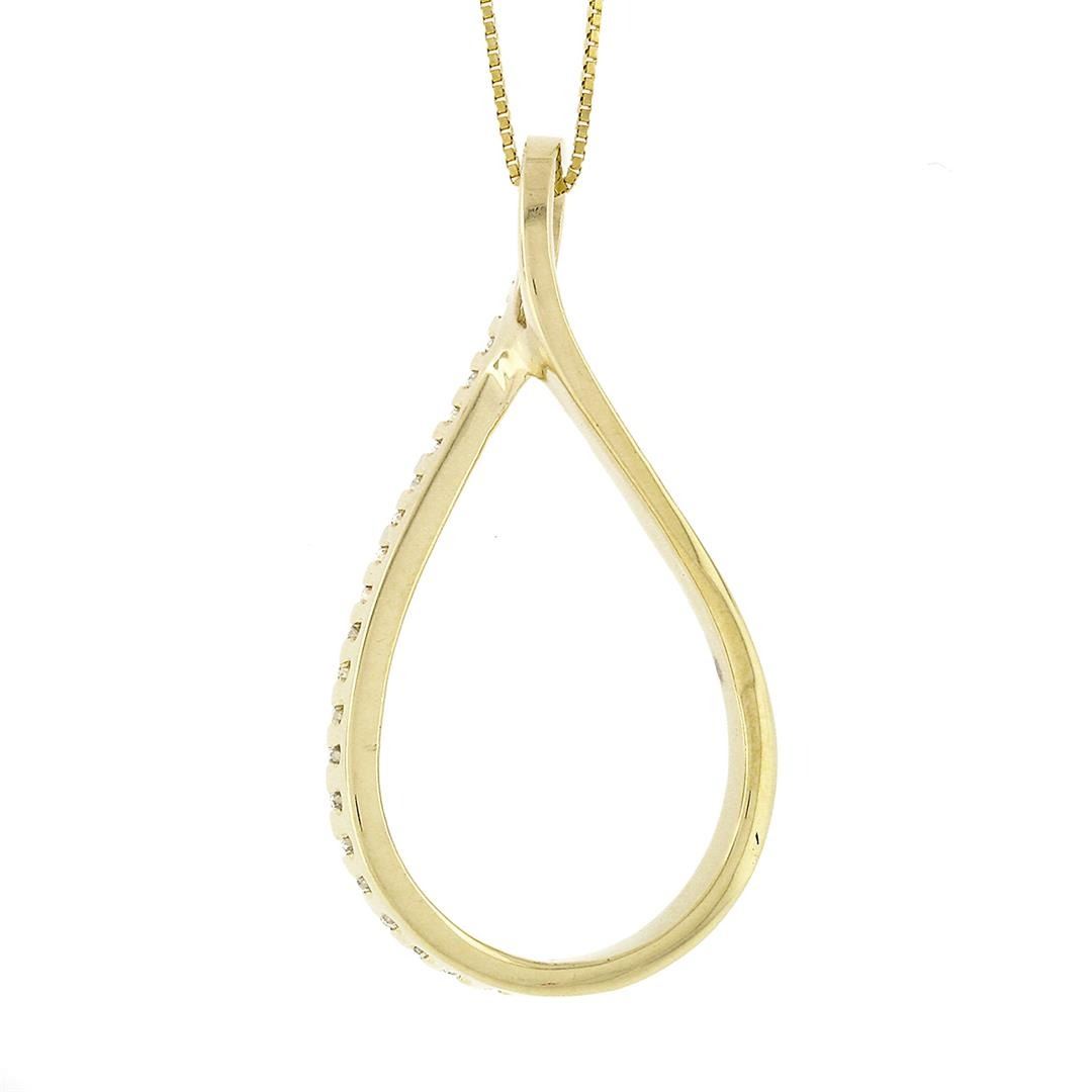 14K Yellow Gold .30 ctw Diamond Open Tear Drop Infinity Loop Pendant 20" Box Cha