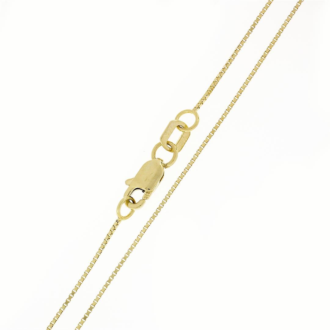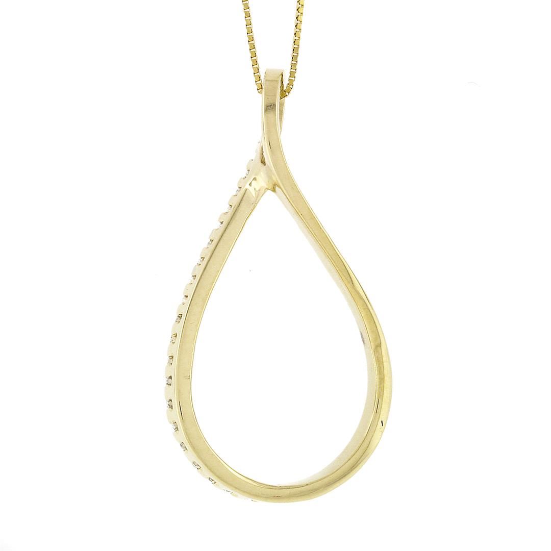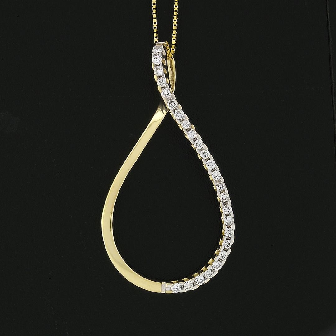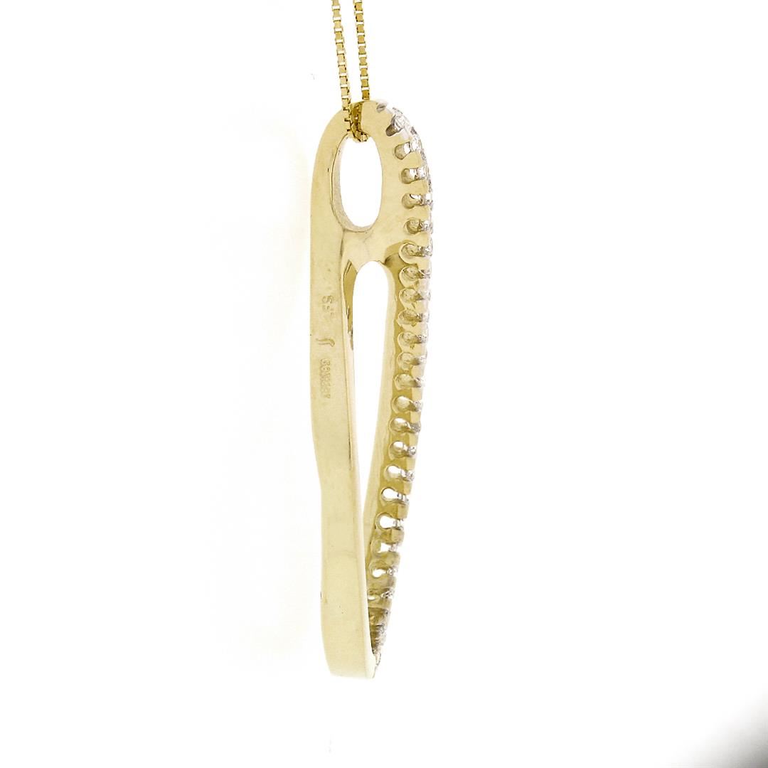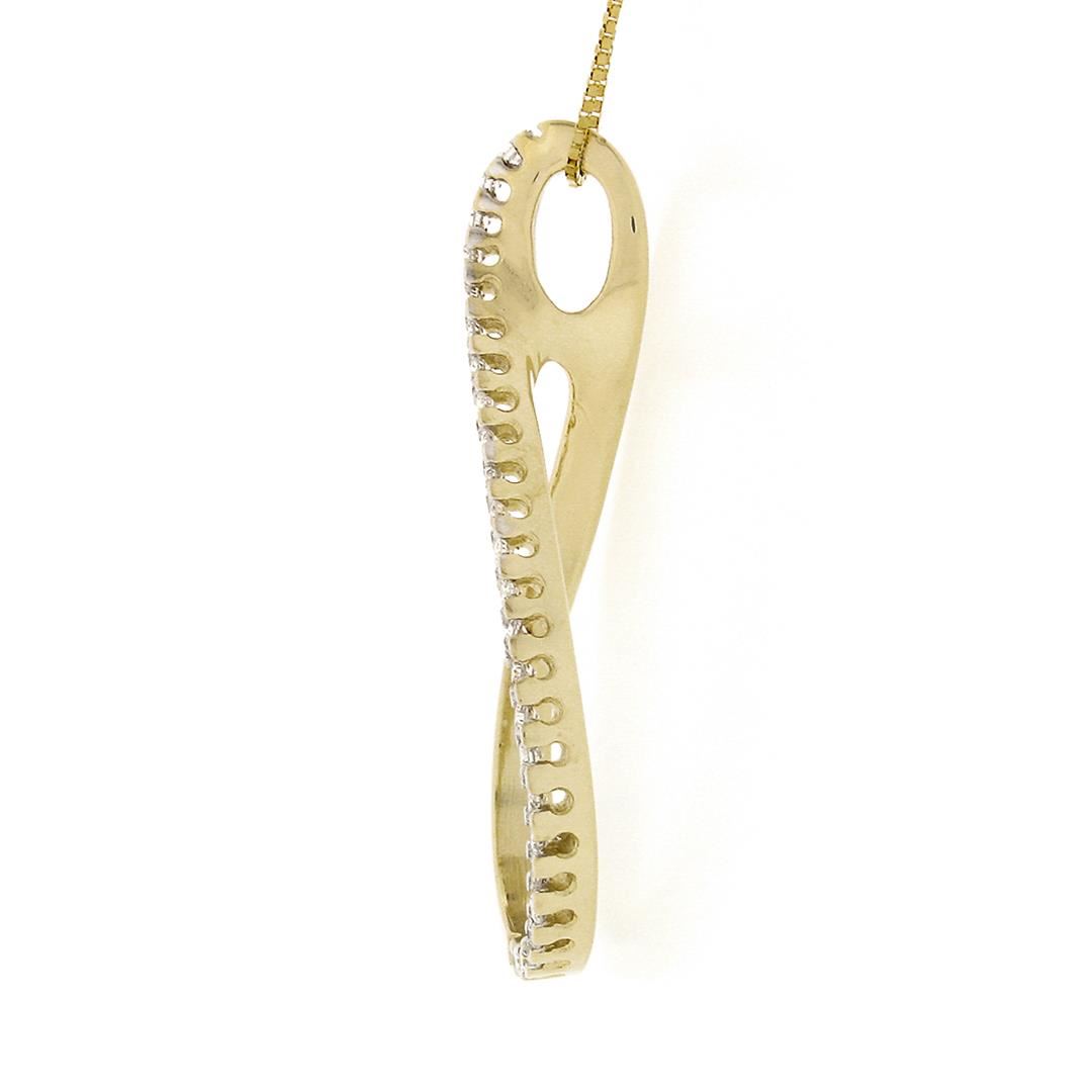 An estate solid 14k yellow gold open infinity pendant necklace, with 25 round brilliant cut natural diamonds (H/I - VS2/SI1 ; 0.30ctw). 20 inch box link chain, 4.69 grams total weight, pendant measures 35x18.6mm.