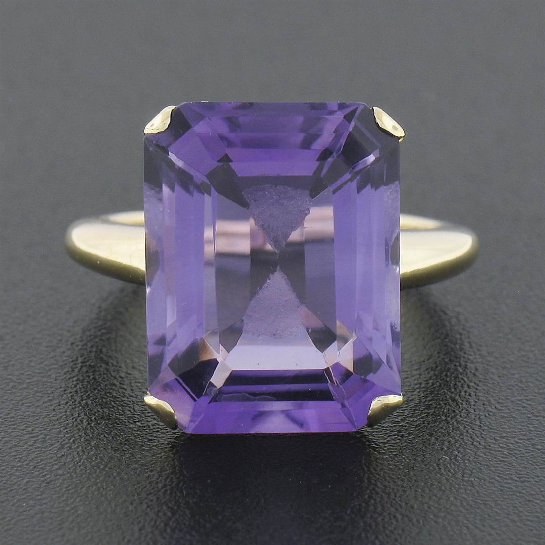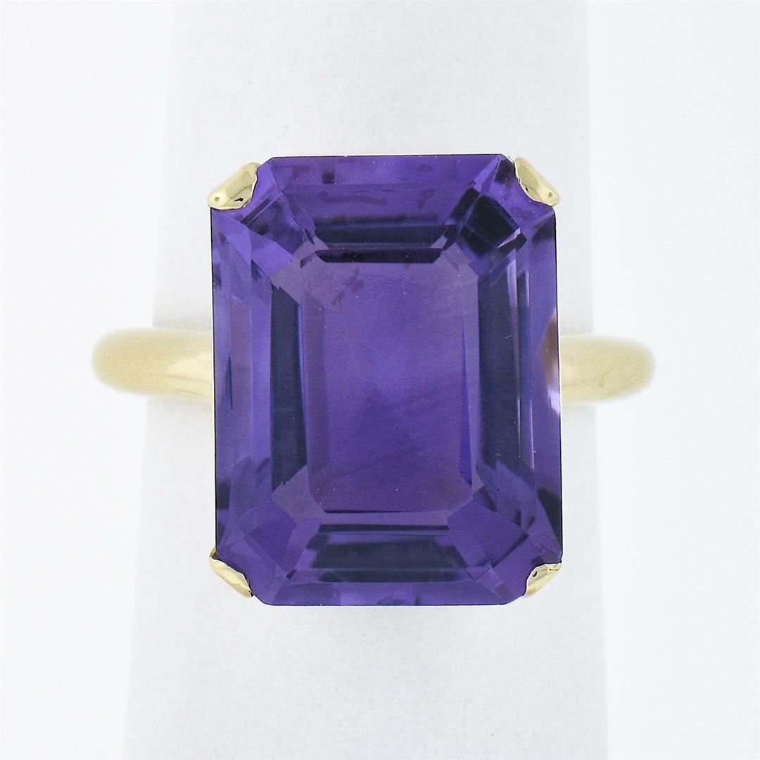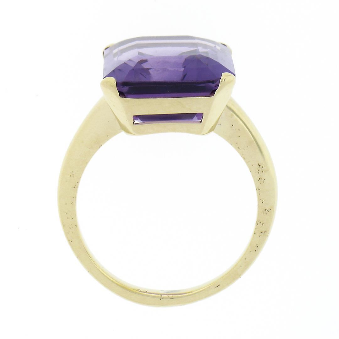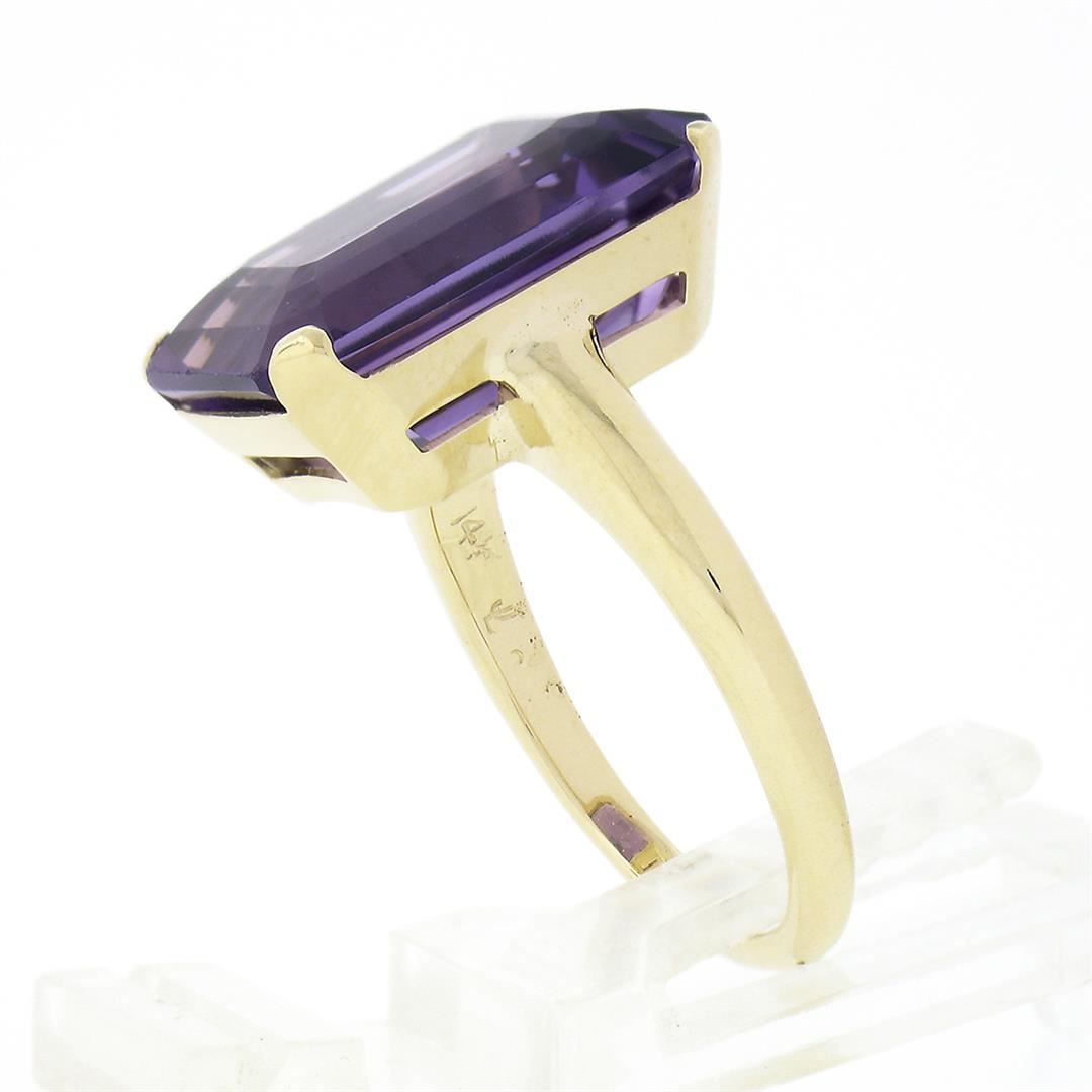 14K Yellow Gold 9.50 ctw Large Amethyst Prong Emerald Cut Solitaire Cocktail Rin